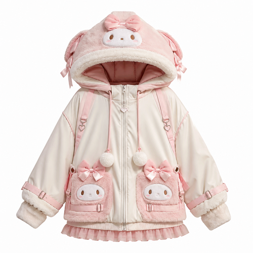 Harajuku-inspired layered ensemble with kawaii patches and platform details