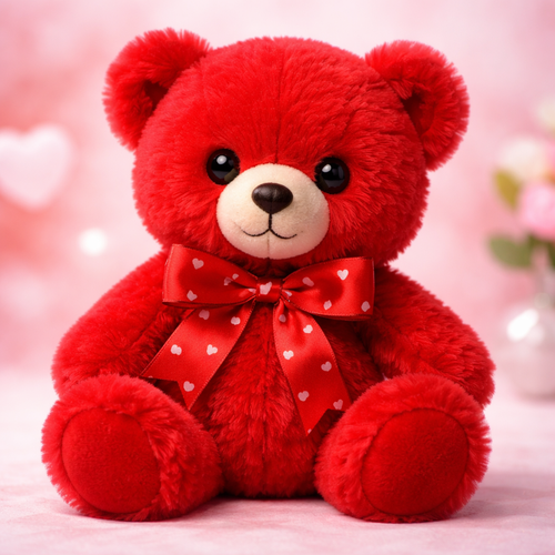 Make a cute teddy bear but the color red