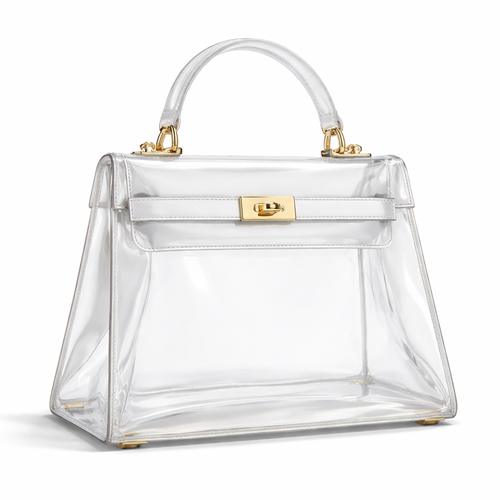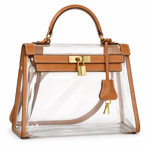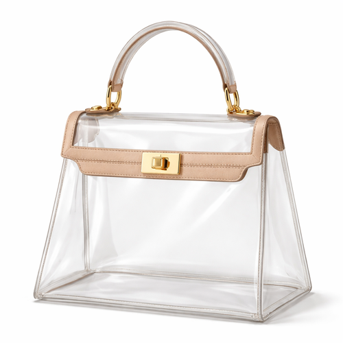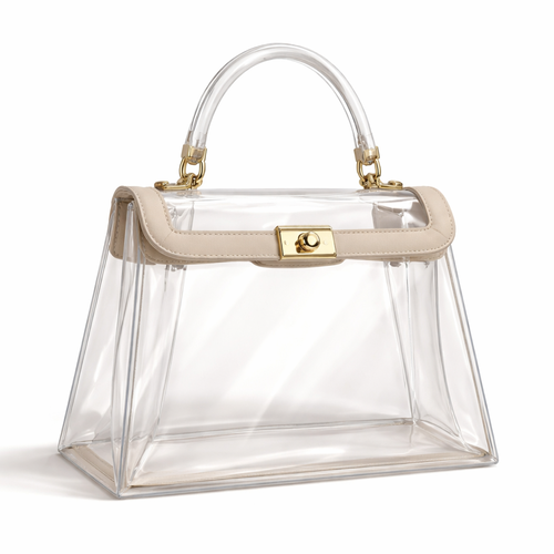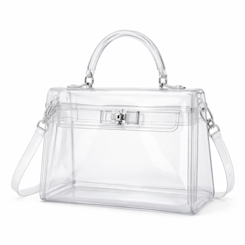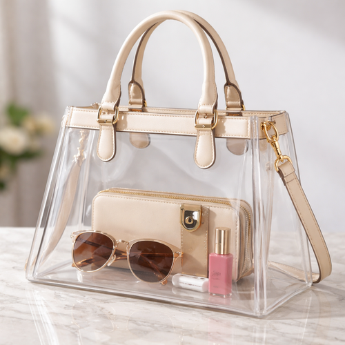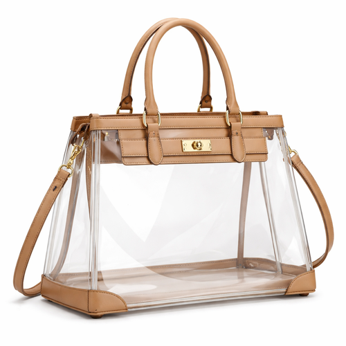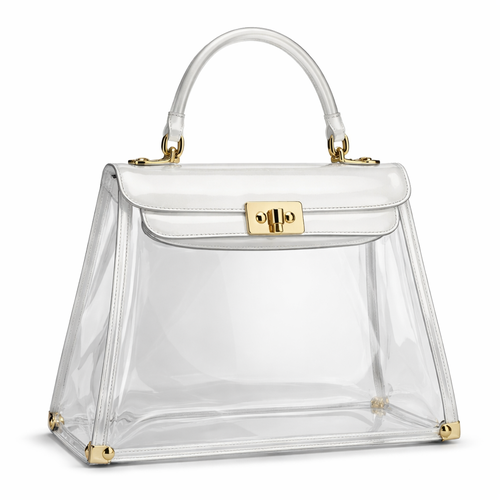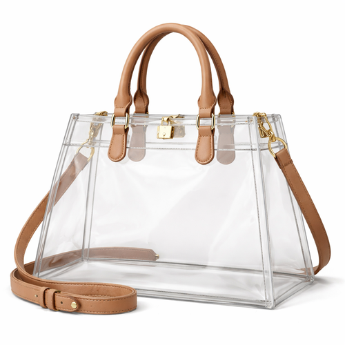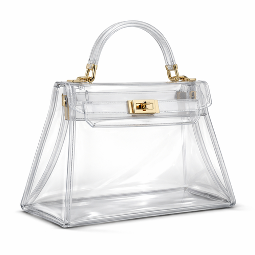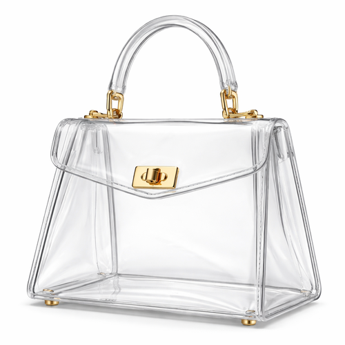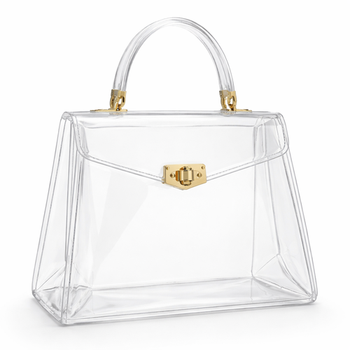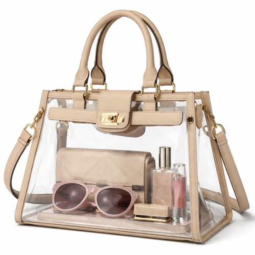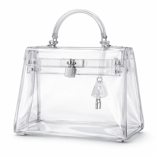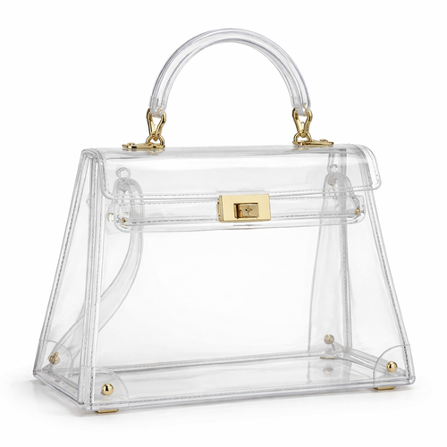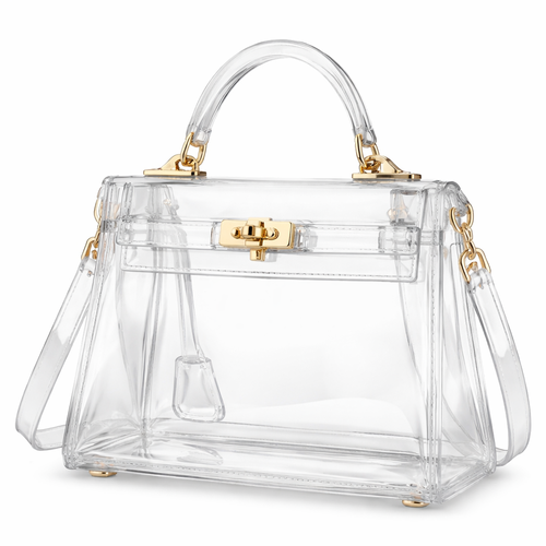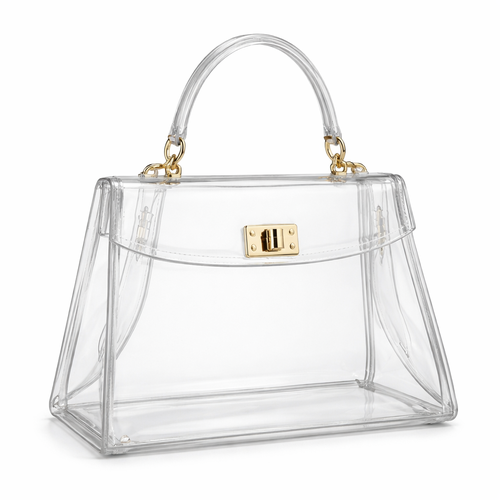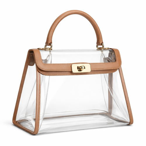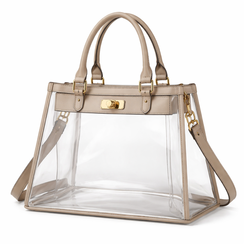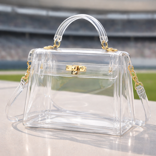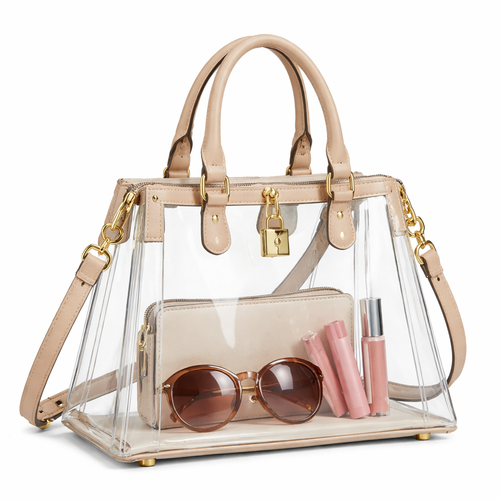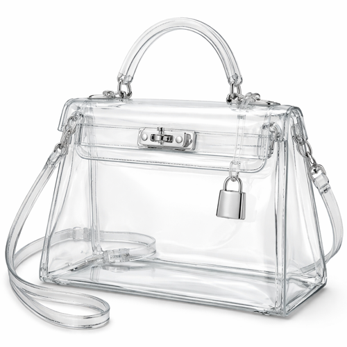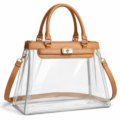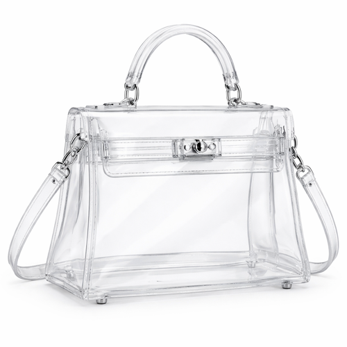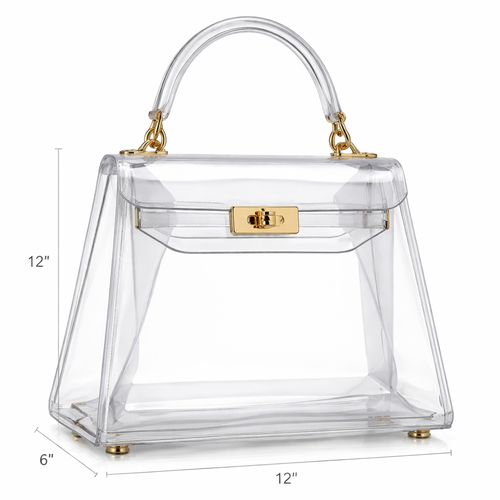 Design a clear handbag that is stadium approved. Dimension cannot exceed 12 inches by 6 inches by 12 inches. Make it hav...