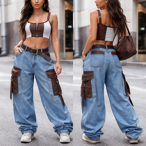 Baggy jeans with dark brown details combined with a top