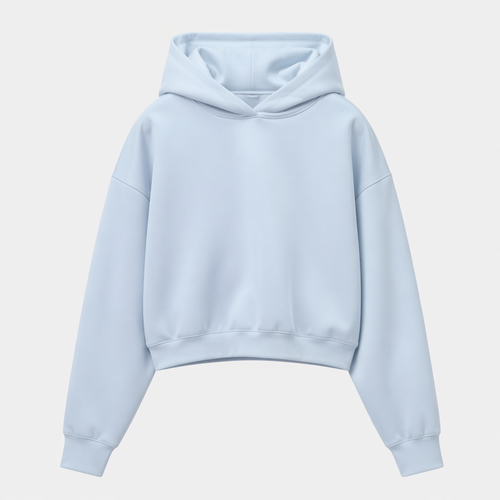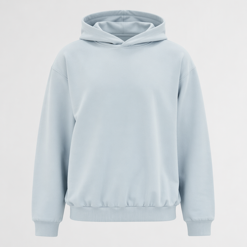 photorealistic fashion design, A Unisex Dress design, suitable for Spring. Soft fabric. Pastell blue hoodie, seamless, n...