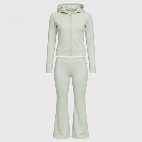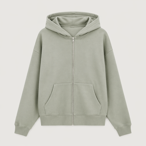A Female fashion design, in Classic style. Pastellblue hoodie. Soft fabric, basic, and comfortable. With pockets on the ...