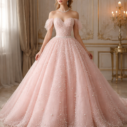 فستان وردي مع لؤلؤ