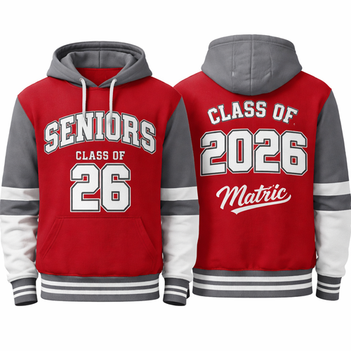 a red grey and white school jersey for matric written seniors class of 2026
