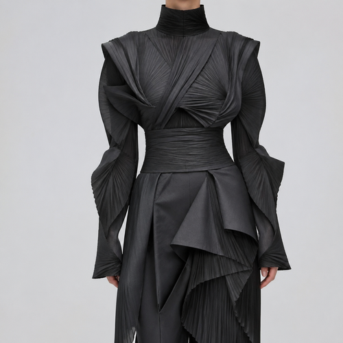 A Male Skirt design, suitable for Spring. A Male Skirt design, suitable for Spring. can you design a 3/4 pleated black l...