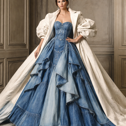 Gown with denim and over coat over shape with cotton