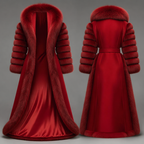 Red coat with fur on the arms and the outer lining with good smooth fabric inside