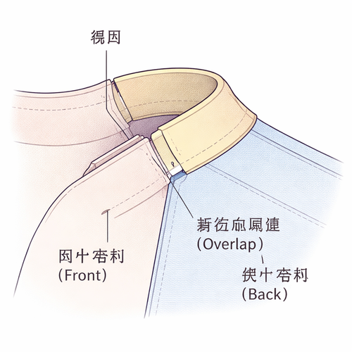 [ 領口側面結構 ] 前片布料 (Front) | V /------\ <-- 領頭 | || | ----/ || \...