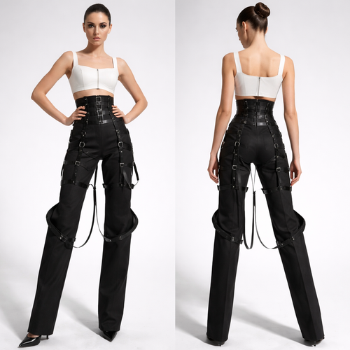 POWER TROUSER SYSTEM High waist elongated trousers with harness layering. Key features Extremely high waist Long leg pro...