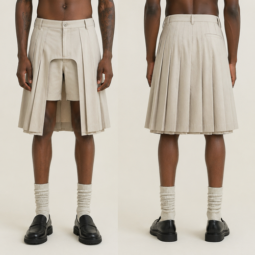 A Male fashion design. Consider Egyptian fashion — flowing silhouettes, vibrant colors, cotton and linen traditions, mod...