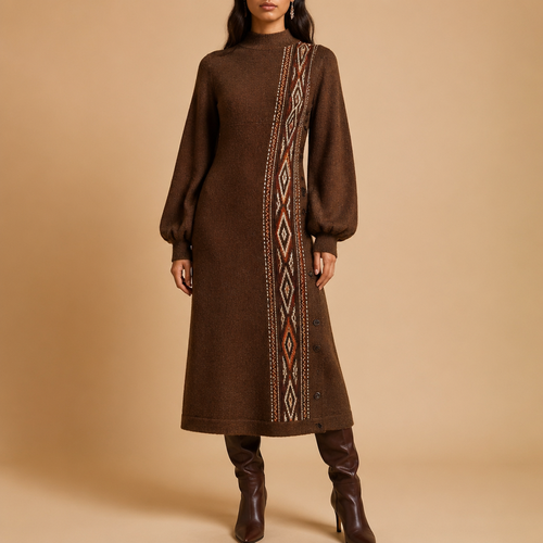 A Female Dress design, suitable for Fall. Consider South African fashion — diverse multicultural styles, Shweshwe prints...