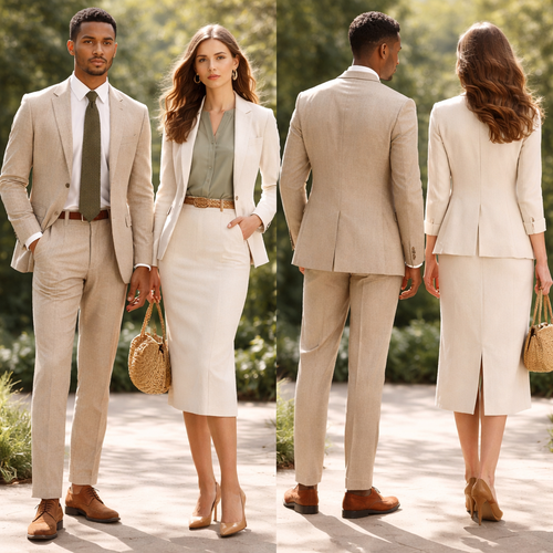 Corporate Attire: (1 Male, 1 Female) o Showcase sustainable alternatives to traditional business wear. o Utilize eco-fri...