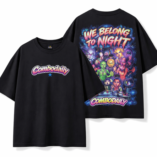 Combodaily streetwear brand t-shirt with graphic party theme back print We belong to the night