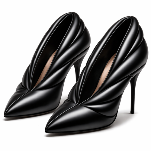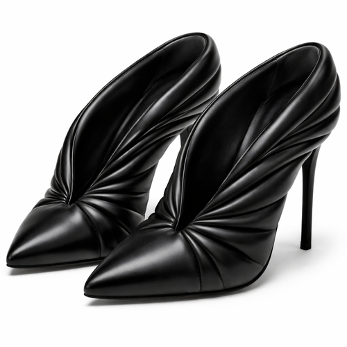 Shoes fluffy line, heel sandals puffy leather lines like injected wings wrapping around the foot line, two parts symmet...