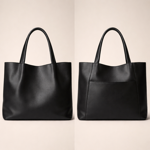 Design me a unisex leather bag, fashionable enough for evening, large enough for shopping ander versatile. The bag shoul...