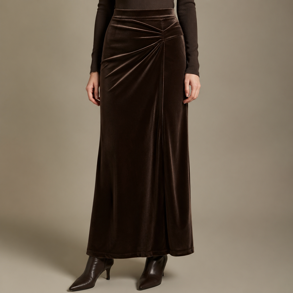 A Female Skirt design, made of Velvet, for Work, suitable for Fall, in Y2K style. Saudi Arabia fashion aesthetics.