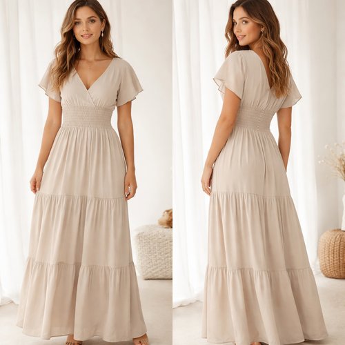 Je veux faire une robe longue qui passe partout avec tissus léger Pas le dos ouvert un truc tendance pas extravagant