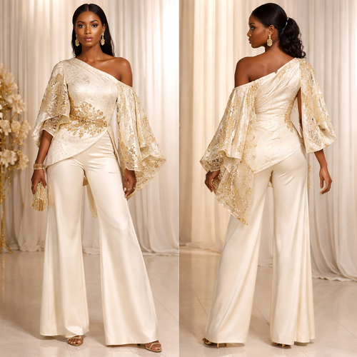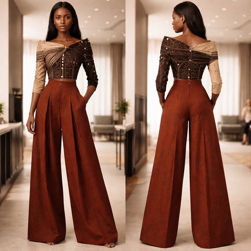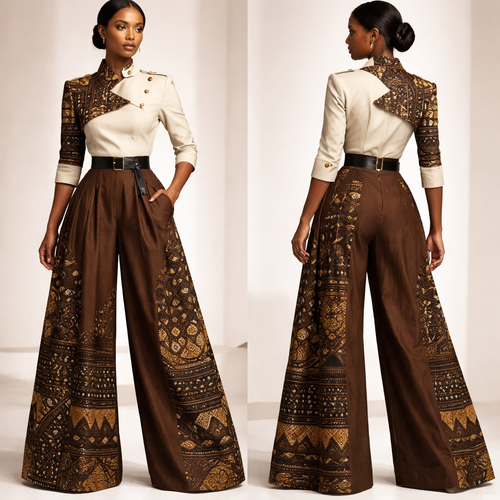 Crée un ensemble rare et luxueux composé d’un haut style boubou chic moderne avec un pantalon large élégant. Le haut doi...