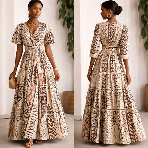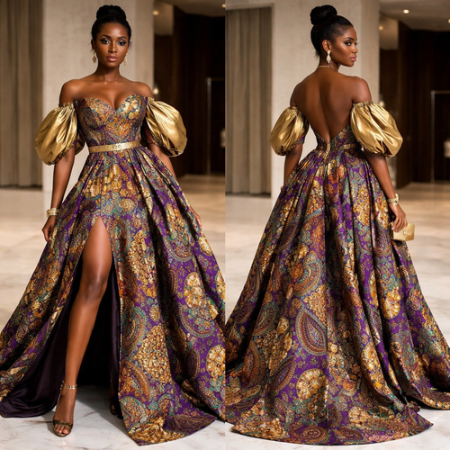 Je veux une robe rare, élégante, jamais vue, avec une touche couture et un style luxueux avec pagne dampé