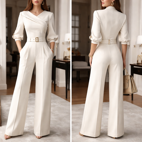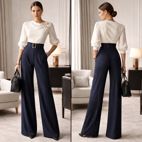 Crée une combinaison féminine haut de gamme pour le travail, élégante et rare, style ample . Je veux une coupe parfaite...