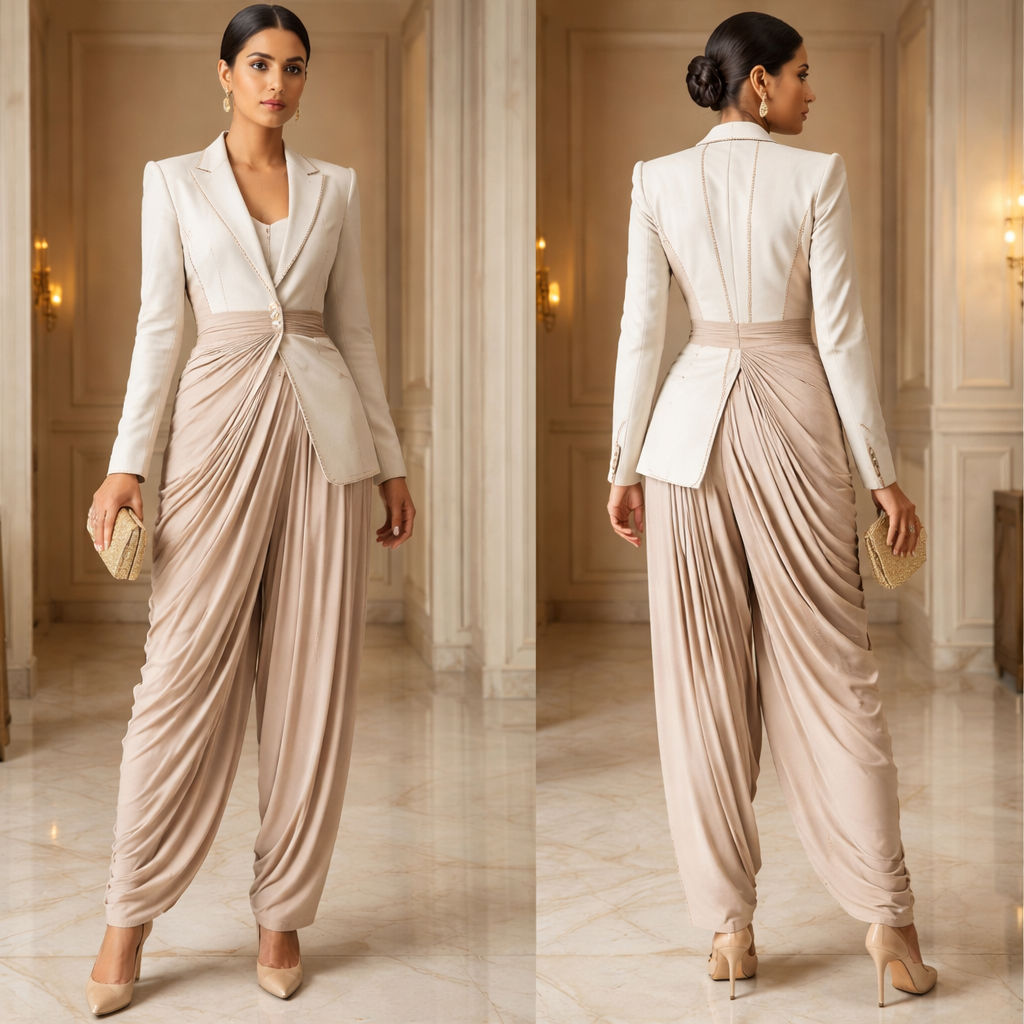 Stitches Dhoti and jacket top for women , business style, show front and back