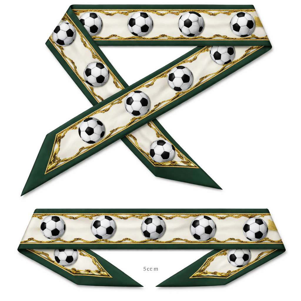 Design a silk scarf that is 5 x 86cm to be wrapped around the handle of a Kelly style bag It needs to have a tailored polished simple looks with no logos or words. Have it a repeated pattern of soccer balls. Make it old money looking