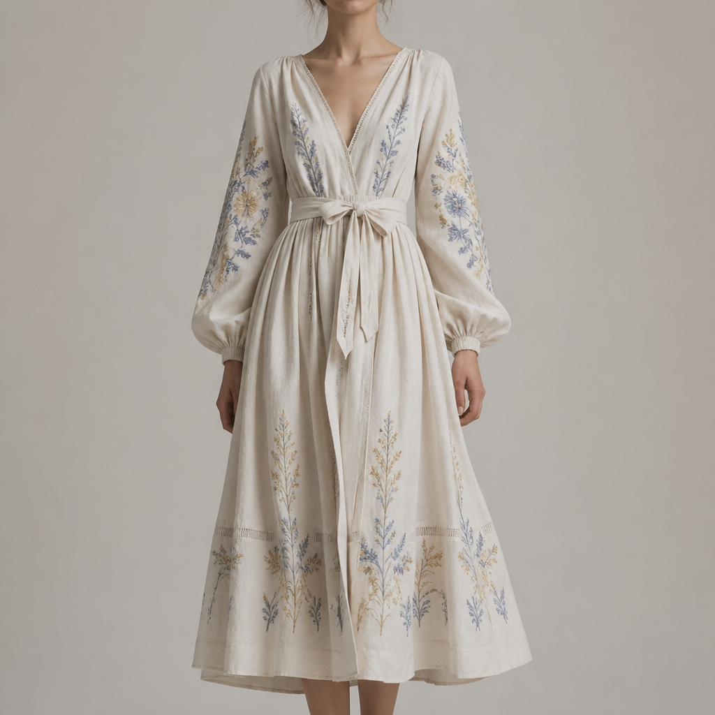A Female Dress design. Ukraine fashion aesthetics. Current season is Spring in Ukraine.