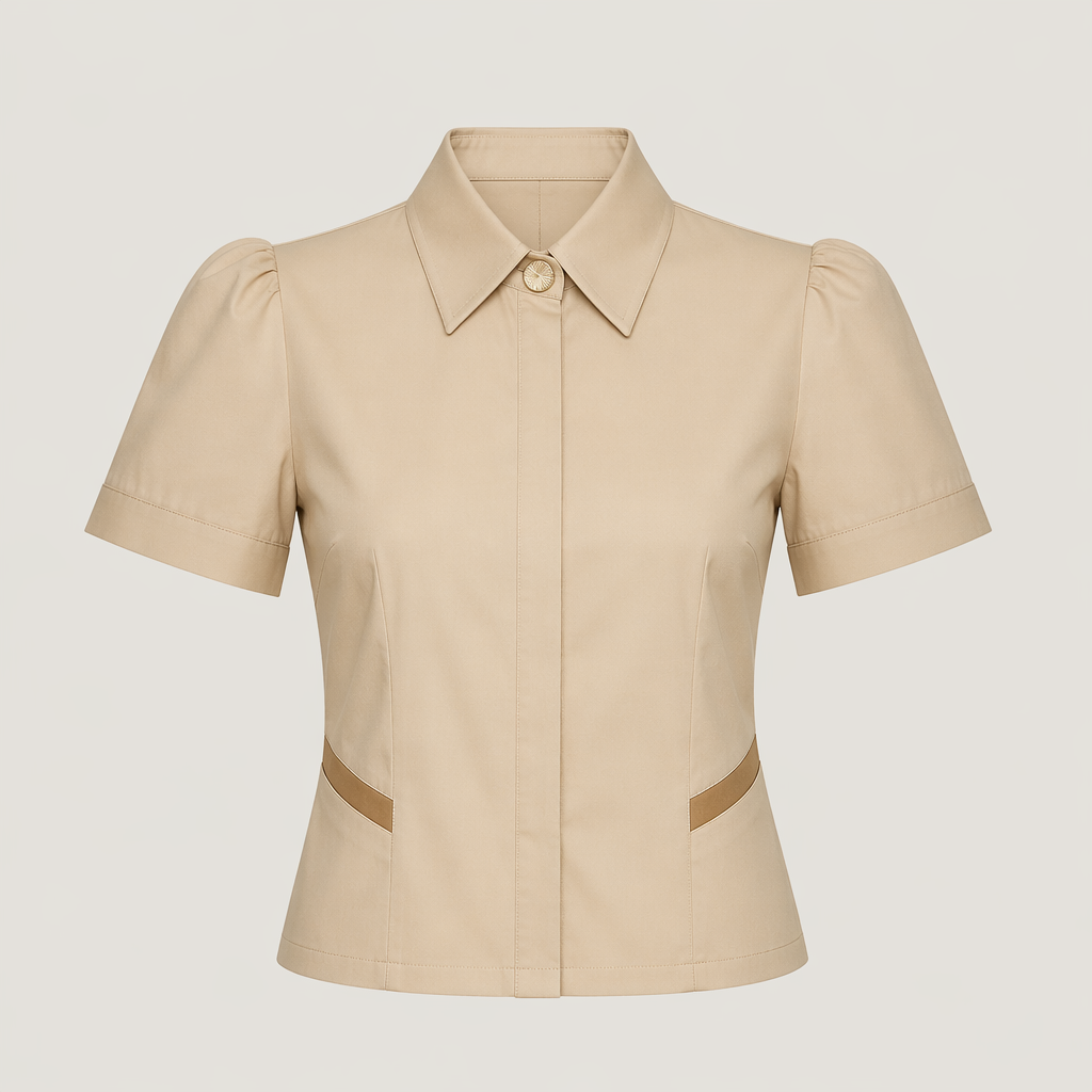 photorealistic fashion design, A Top design, suitable for Spring, in Uniform style. Egypt fashion aesthetics., uniform style, just the design no text