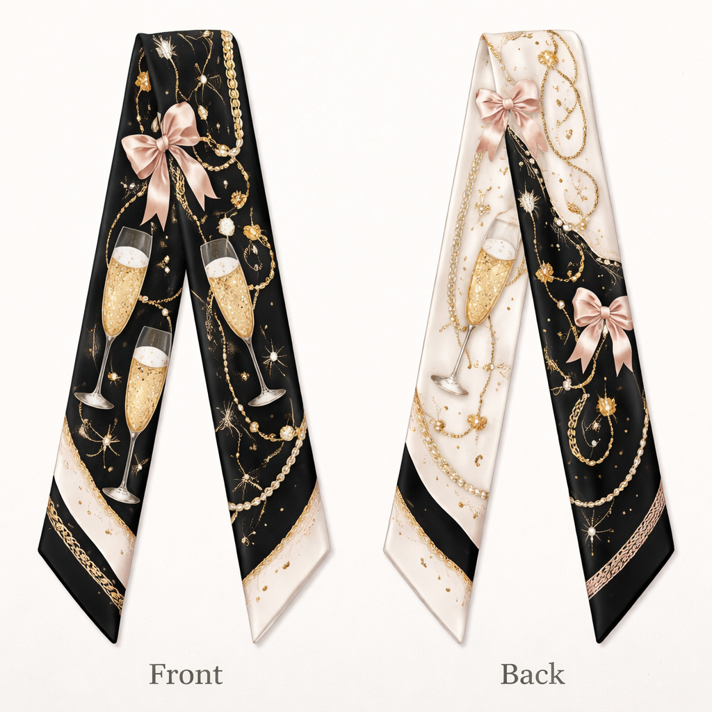 Silk scarf that is 5x86cm designed for a handle on a Kelly style bag that is suitable for cocktail hour