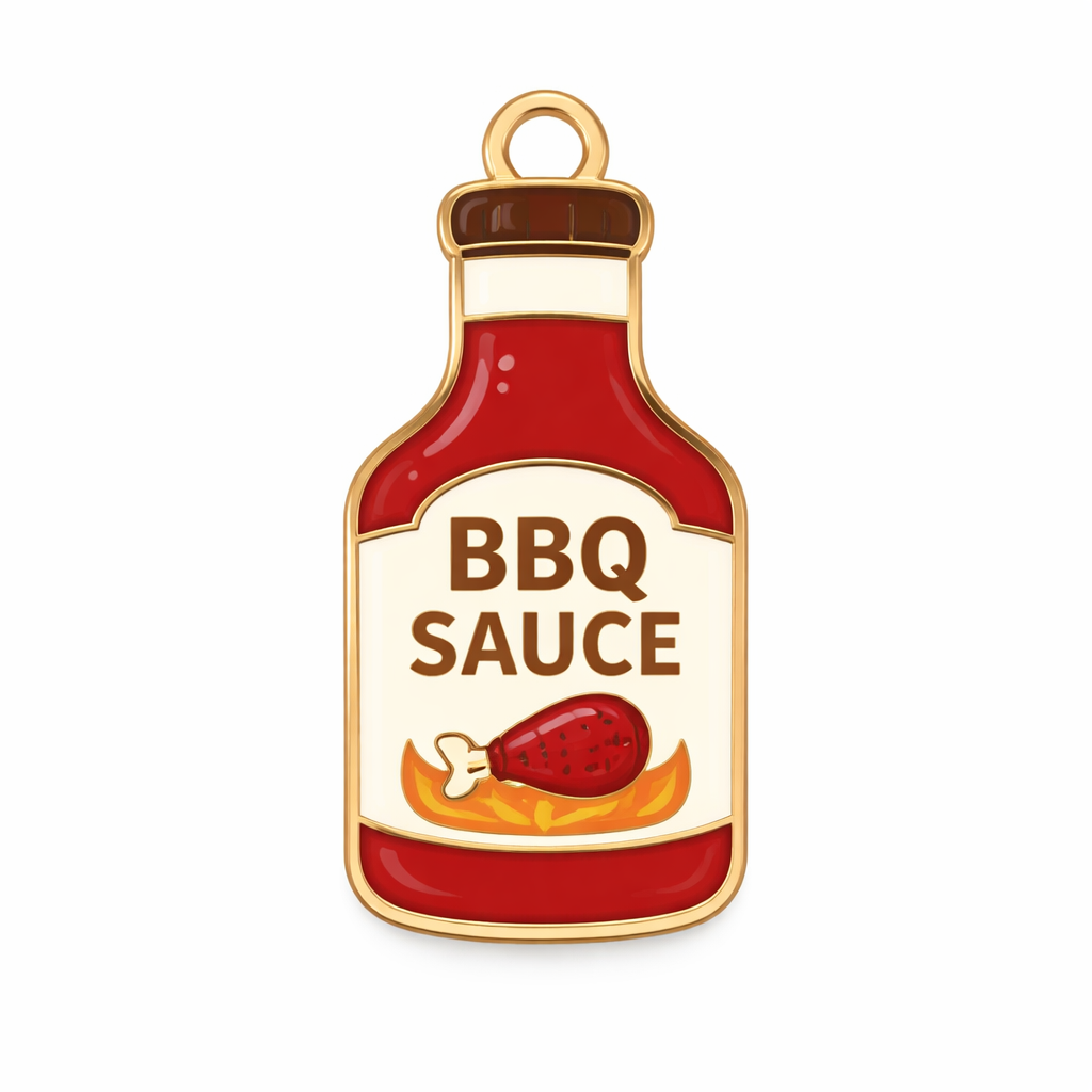 Create an enamel charm that is a BBQ sauce bottle and make it simple