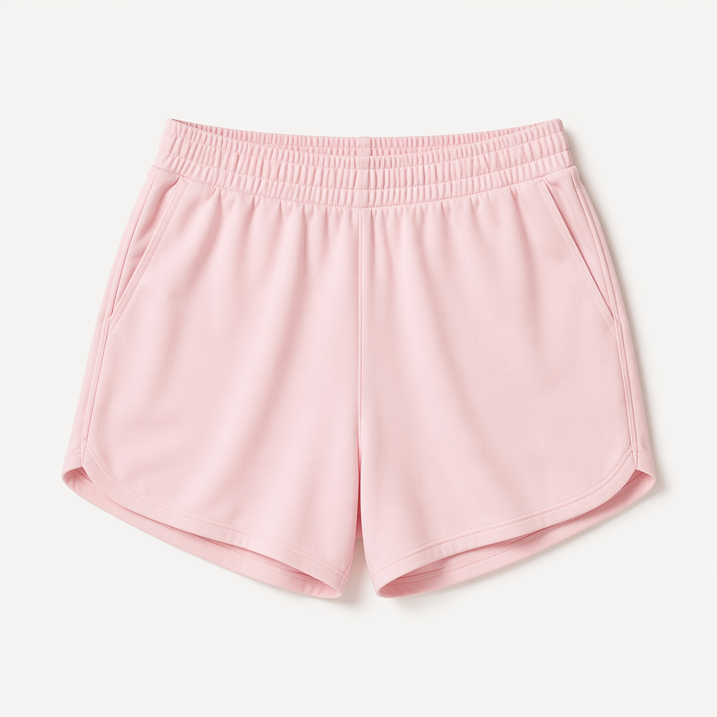 photorealistic fashion design, photorealistic fashion design, A Unisex Dress design, suitable for Spring. Seamless tank top. Loose, comfortable everyday use. Pastell pink. For people with sensory issues. Soft fabric.. Sweden fashion aesthetics., just the design no text. Refinement: Make pastell pink shorts instead, just the design no text