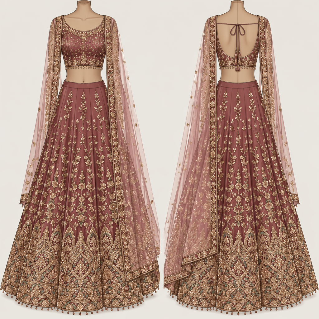 A Dress design. Consider Pakistani fashion — shalwar kameez, gharara, sharara; lawn fabrics, chiffon; intricate embroide...