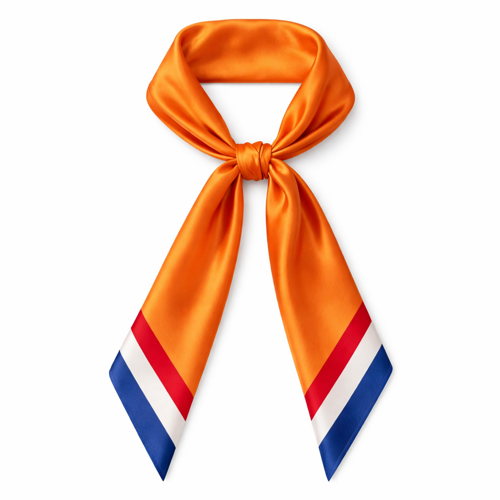 Design a silk scarf that is 5x86cm that is Netherlands colors for their soccer team for the World Cup 2026. Just colors no logos. Just orange with angled corners, classic style
