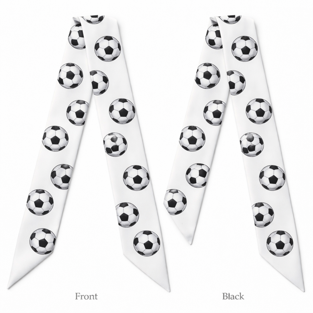 Design a silk scarf that is 5 x 86cm to be wrapped around the handle of a Kelly style bag It needs to have a tailored polished simple looks with no logos or words. Have it a repeated pattern of soccer balls, classic style, show front and back