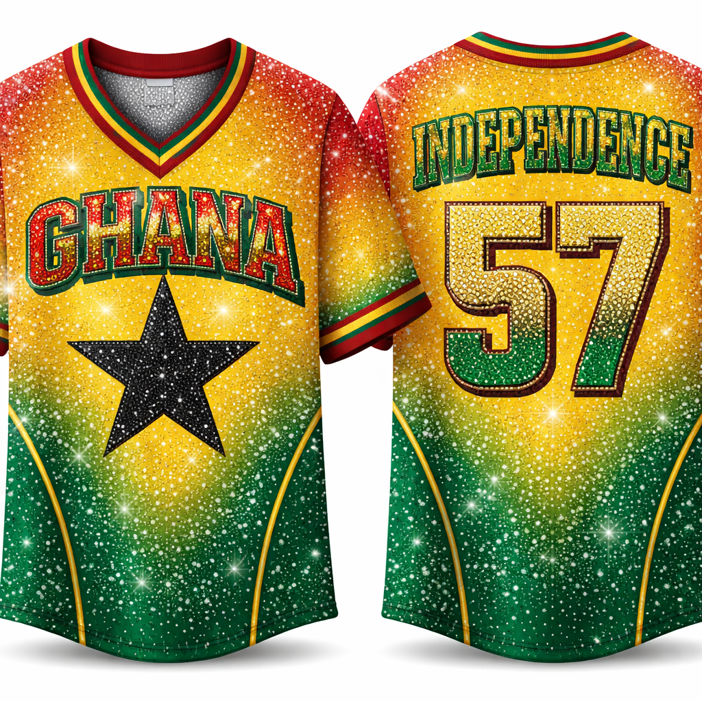 Fashionable jerseys for Ghana Independence Day celebrations with fashionable stones like diamond with color blend like r...