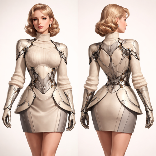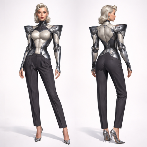 Trend: future armour Layered torso silhouette, blending organic curves with mechanical hinge joints: shows soft armour, show front and back