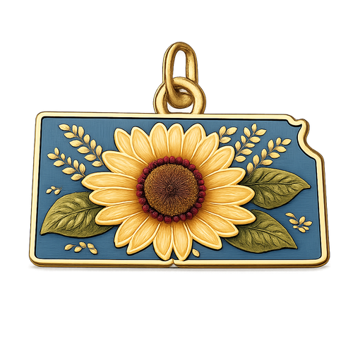 Design a 1 inch enamel charm that in the Kansas state sunflower