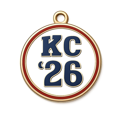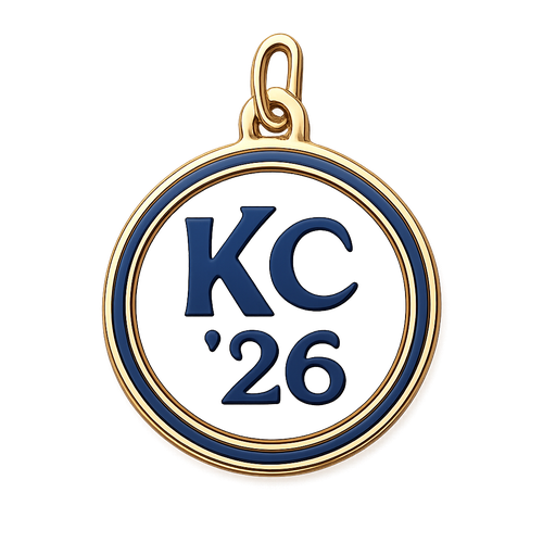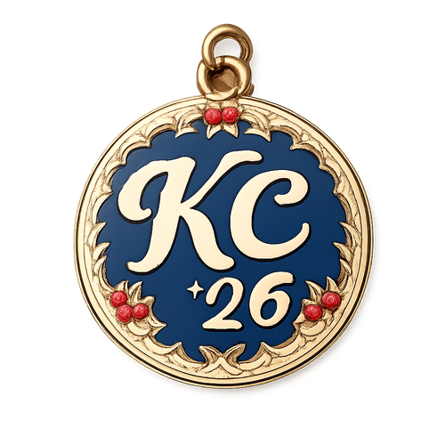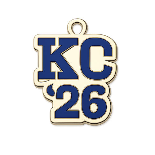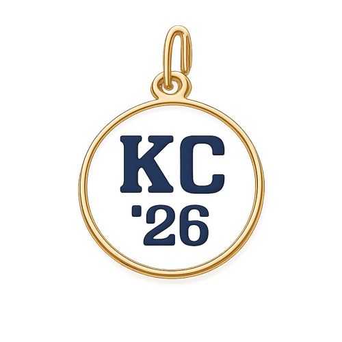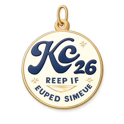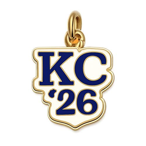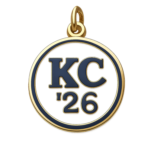 Design a 1 inch enamel charm that says KC ‘26 keep it super simple