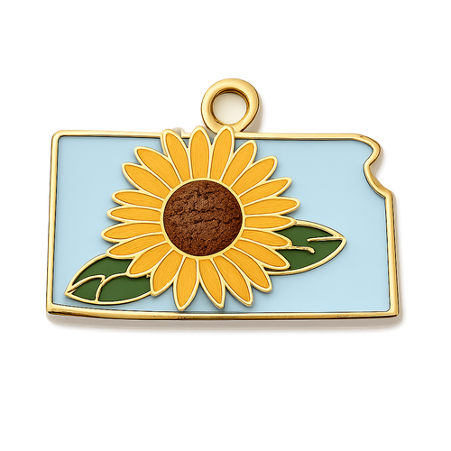 Design a 1 inch enamel charm that in the Kansas state sunflower keep it super simple. Just a sunflower