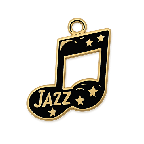 Design a 1 inch enamel charm that is a Jazz music note. Make it super simple