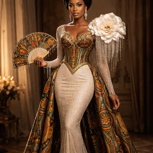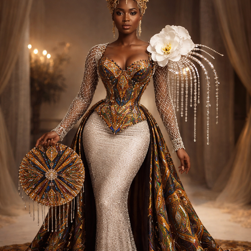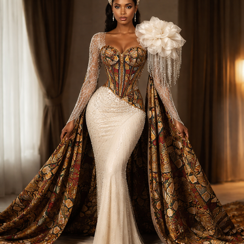 I want the dress to have a very detailed dress that’s slim with this wave type of thing behind the head part and I want ...
