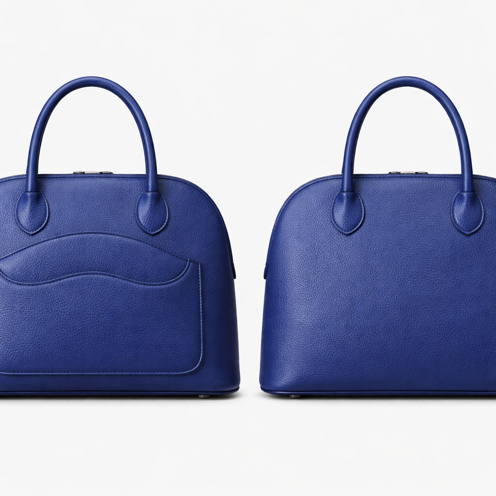 Male me a leather bowler bag unisex in the stile of hermes bolide. No hardware. But different than hermes. Make in royal blue textured leather. Add a unique front pocket.
