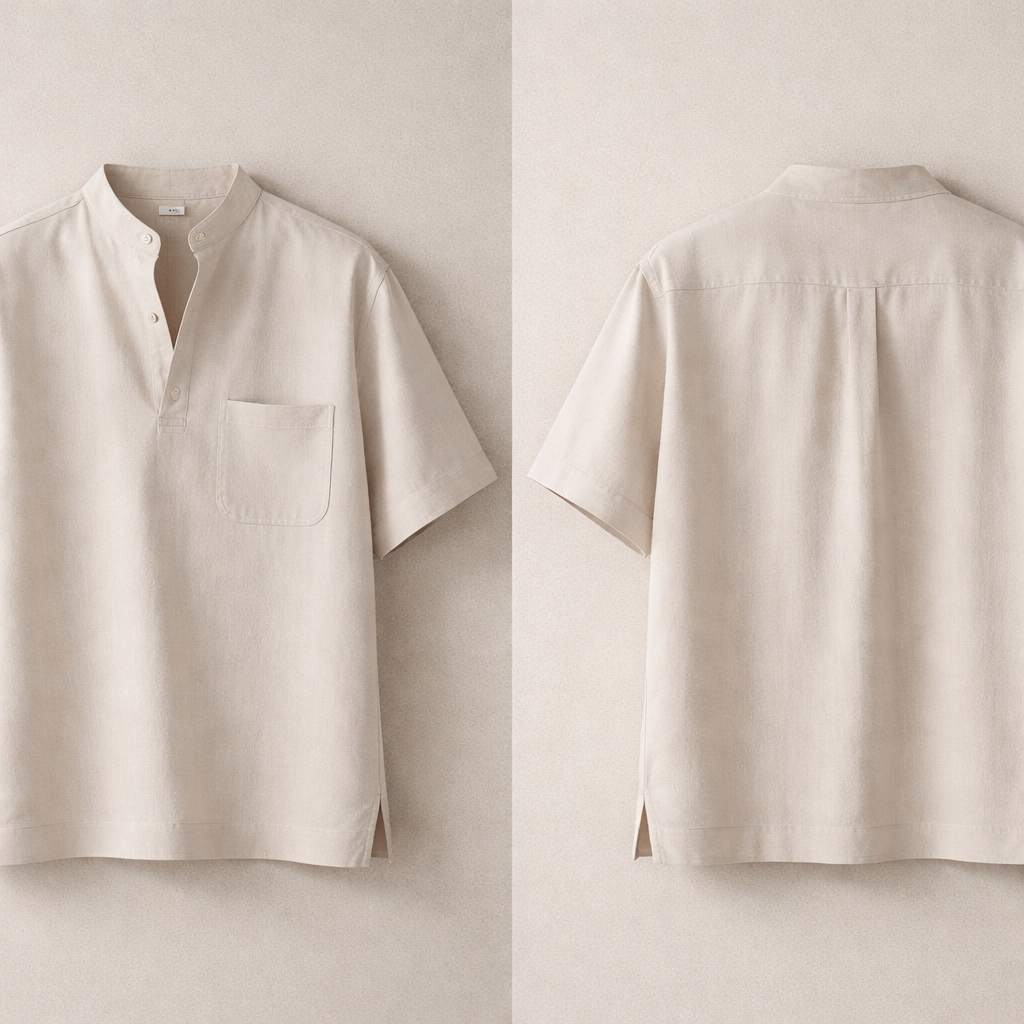A Male Top design, suitable for Summer, in Minimalist style. Thailand fashion aesthetics., minimalist style, show front and back
