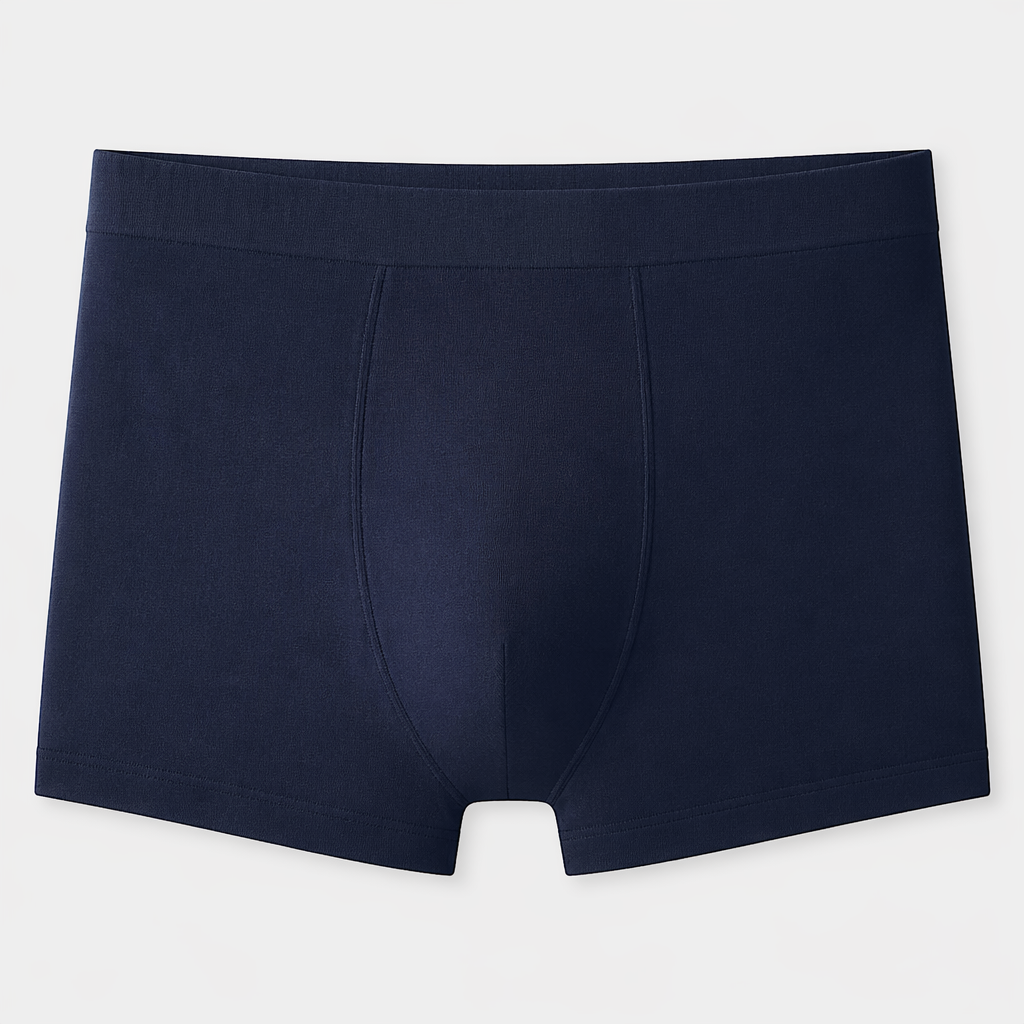 photorealistic fashion design, A Male Accessories design, in Casual style. Boxers navy, seamless, comfortable, everyday use, no tags, soft fabric.. Sweden fashion aesthetics., casual style, just the design no text