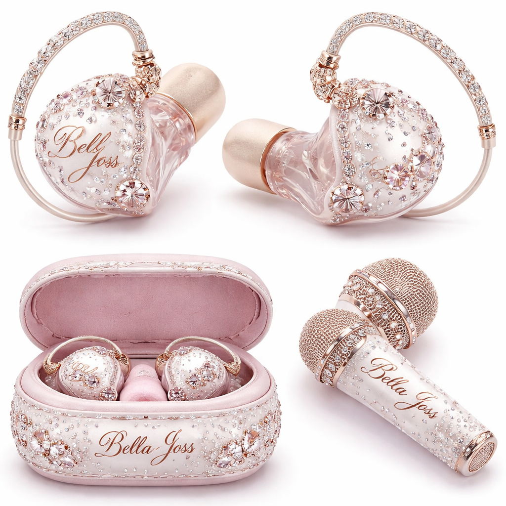 Ear piece and case and microphone matching delicate swarosky BJ written professional for stage more sophicatted not so ...