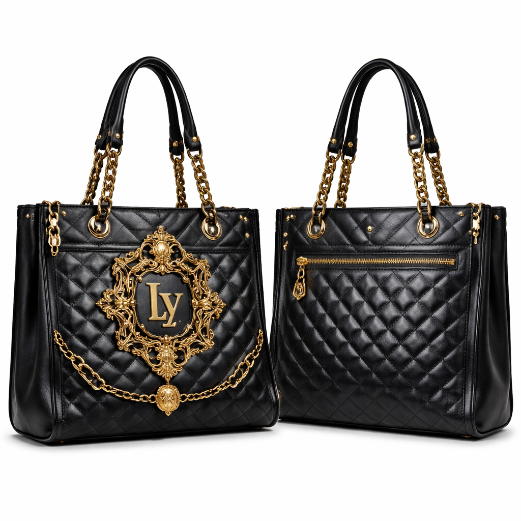 Luxury cougure stile leather tote bag for men and women. High luxury , glamorous style, show front and back