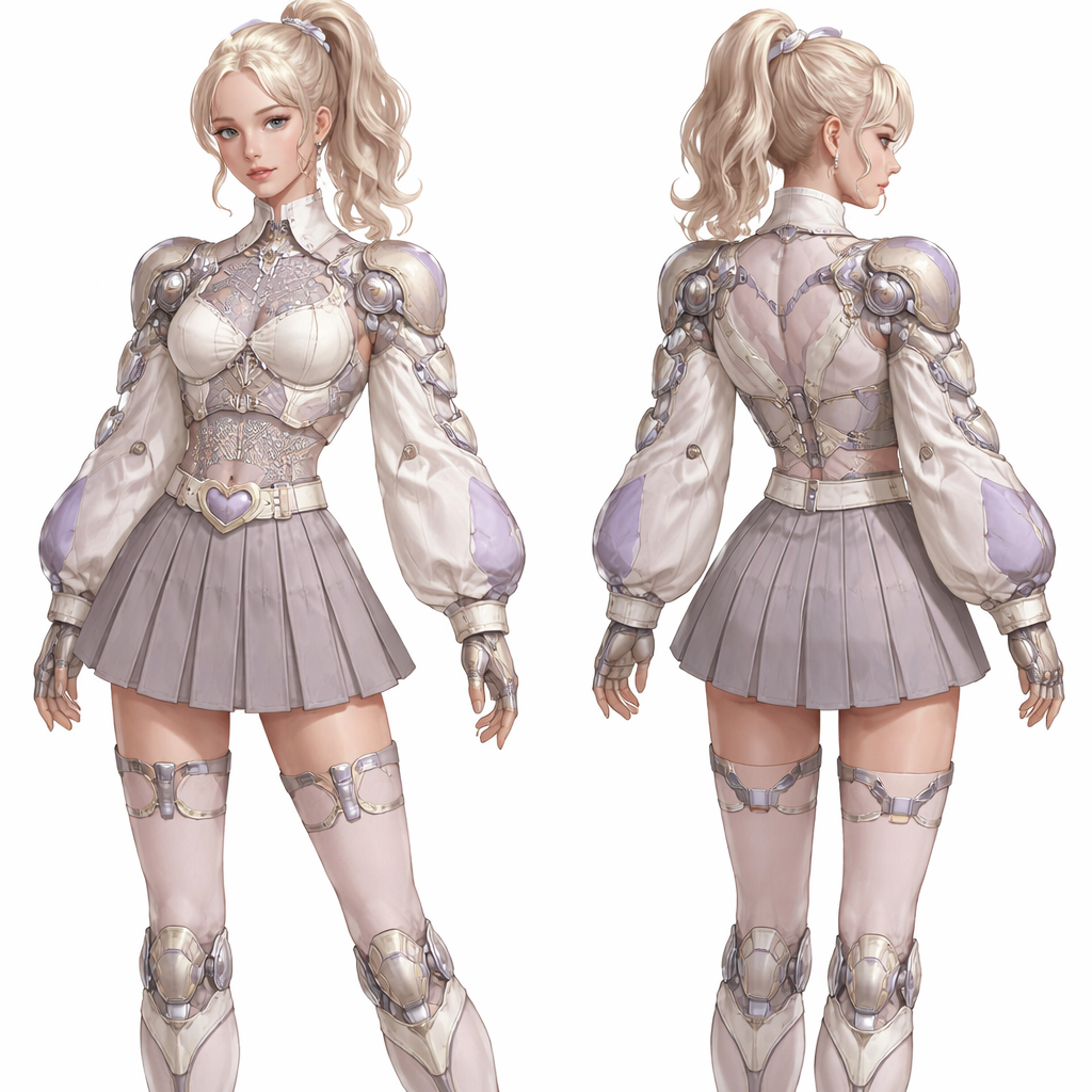 Trend: future armour Layered torso silhouette, blending organic curves with mechanical hinge joints: shows soft armour, preppy_chic style, show front and back