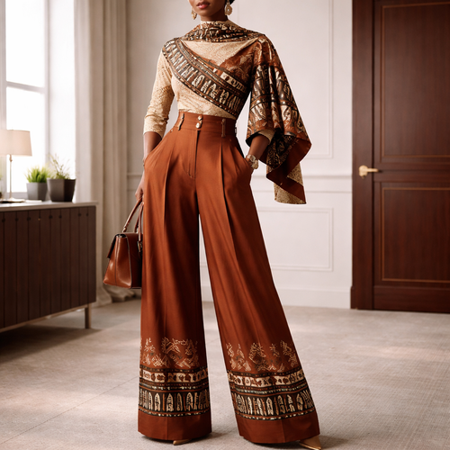 Crée un ensemble rare et luxueux composé d’un haut style boubou chic moderne avec un pantalon large élégant. Le haut doi...