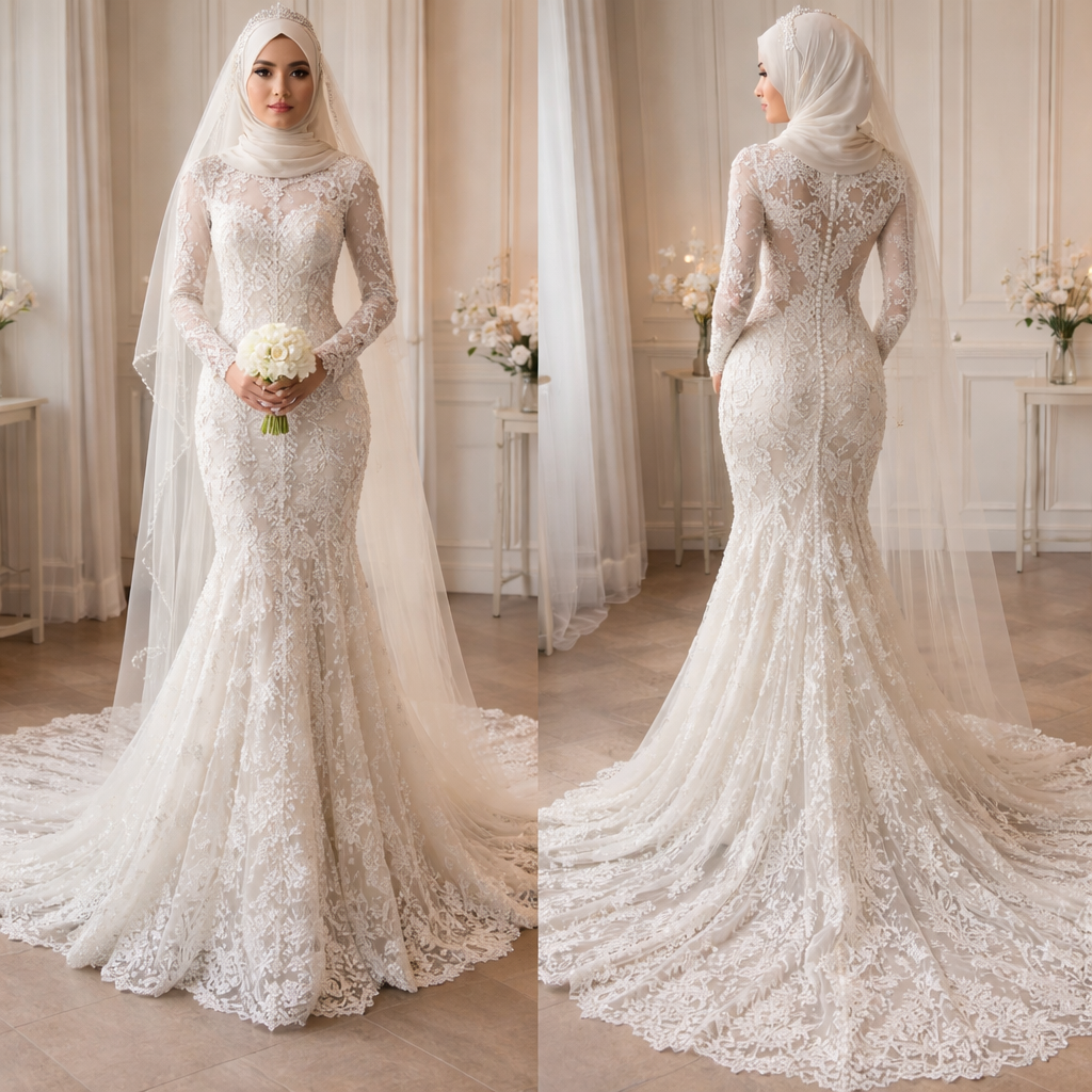 Hasilkan kebaya pengantin Labuh smpai lantai, luar netting patching lace dan bahagian belakang Ada ekor.. pastıkan bahag...