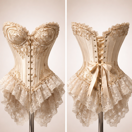 Tight dress especially around the waist, light pink and shell like colour's with lace sleeves which hang and a tail by t...